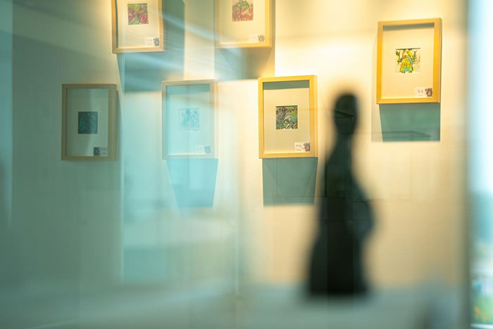 展覽中,稚拙的筆觸與遠古神像、唐代石佛并置,形成一條貫通萬年的文明線索。那些被重新詮釋的圖騰與神像,恰是對當代生活的神性注腳。