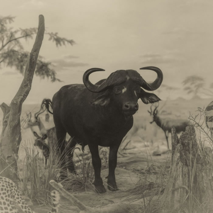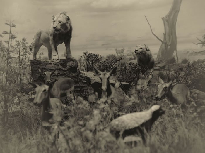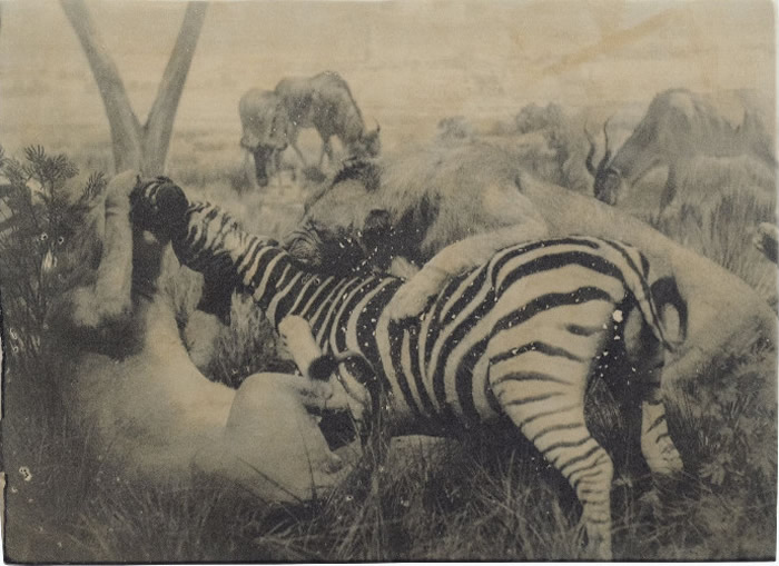 在創作手法方面,林世豪對構圖與光影的把控精妙絕倫。他精心設計畫面結構,巧妙運用戲劇性光線,將動物標本轉化為承載哲學隱喻的視覺符號。通過明暗對比勾勒標本輪廓,凸顯生命消逝后的“永恒姿態”;借助對稱構圖賦予標本儀式感,以此類比生命輪回的秩序。例如,2025年2月14日創作的鐵銀印相作品中,羚羊標本與自然背景和諧交融,柔和而有力的光影仿佛在訴說著生命雖逝,卻以另一種形態融入自然、獲得永生。這種創作方式促使觀眾在欣賞作品時,不自覺地深入思考生命形態的“靜穆與永恒性”。