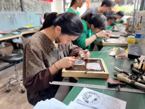 帶領10~12歲兒童在云南新華村學習銀器鏨刻工藝,2024