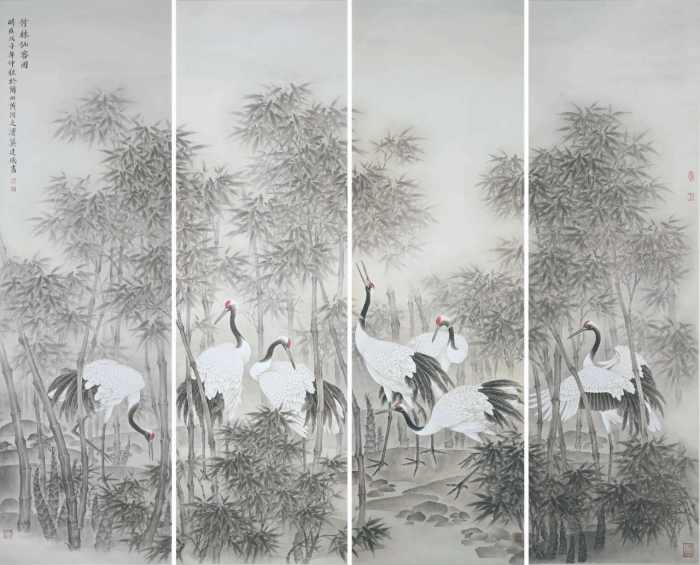 莫建成 《竹林仙客圖》中國畫 240cm×290cm