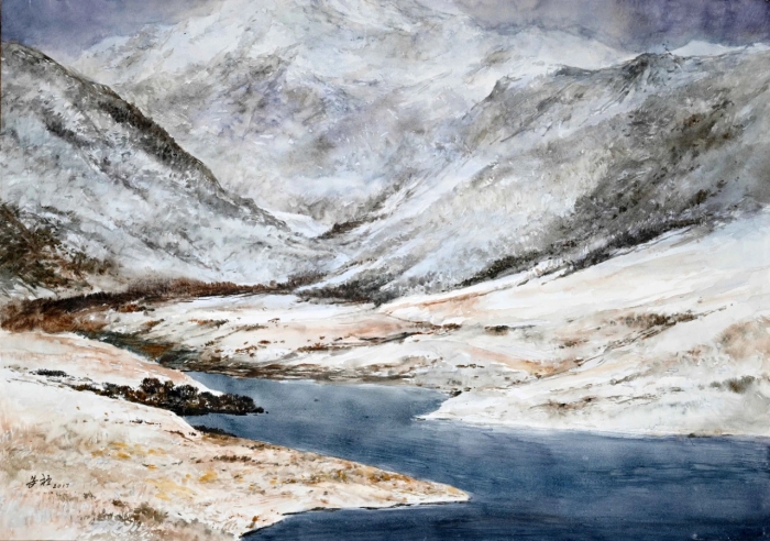 王旻極 《祁連山初雪》水彩畫 105cm×105cm