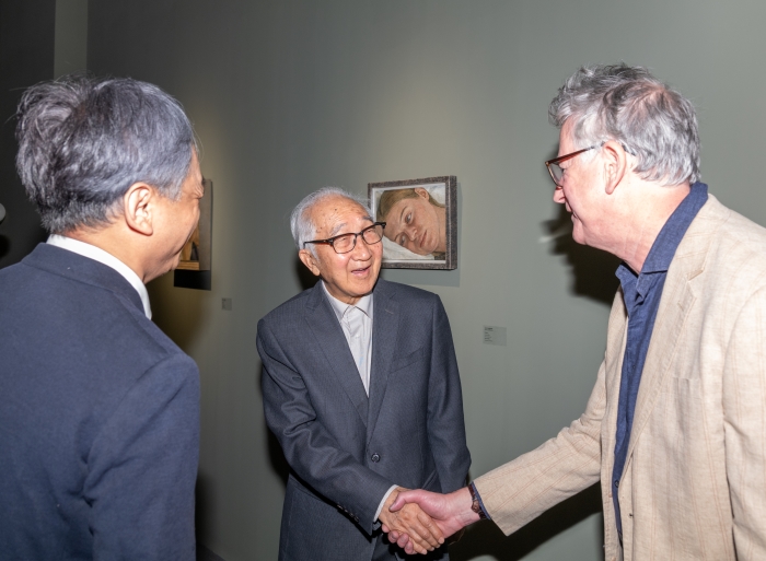 英國皇家肖像畫協會主席安東尼·康諾利和副主席安東尼·威廉姆斯一行在浦東美術館參觀陳逸飛畫展