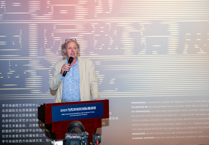 康諾利指出,中英藝術合作應超越地域界限,通過技法互鑒與觀念碰撞,推動寫實藝術在當代語境下的重生。張鴻賓在發言中表示,本次展覽匯聚意大利、美國、英國、白俄羅斯及中國藝術家的優秀坦培拉作品,展現多元化風貌;中國藝術家在坦培拉領域人才輩出,展覽呈現了中國老、中、青三代藝術家的杰作,體現坦培拉在中國的傳承與創新;參展藝術家阿尼戈尼和威廉姆斯曾為英國女王繪制肖像,體現了本次展覽的國際性和學術高度,意義非凡;他強調,本次盛鑫煜作為組織方,特別邀請曾參加英國皇家肖像畫協會展覽以及獲獎的中國藝術家參展,進一步促進中英藝術交流??抵Z利和威廉姆斯攜各自的坦培拉作品參展,他們的作品以精準的筆觸和深刻的心理刻畫贏得了觀眾的贊嘆。