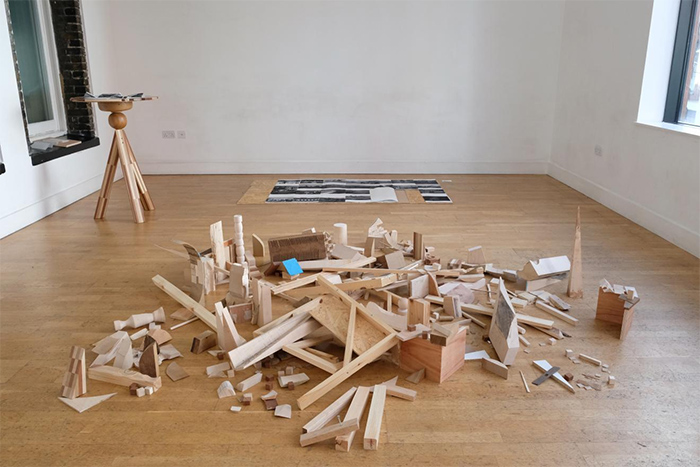 雷藝晴,《舀一碗水去拜訪山泉》,2024,木頭、手工紙、相紙、宣紙、復寫紙、木屑、線、釘子,“倫敦皇家藝術學院 2024屆畢業展”展覽現場. 攝影:雷藝晴. 圖片由雷藝晴提供.