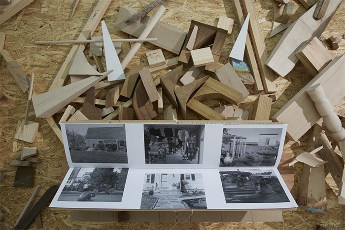 在作品《舀一碗水去拜訪山泉》中,雷藝晴將各種形態不一的,棱角分明的,雕刻過的,殘缺的、模糊的木頭碎塊,用一種看似有意又好像無意的方式散布于展覽空間。