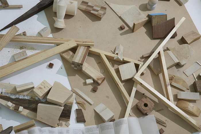 在她看來,這些木塊并非材料意義上的“邊角料”或“剩余”,而是創作過程中的語言碎片——那些未被命名的念頭、在制作中自然脫落的思緒,以及本應被遺忘卻反復回返的感知痕跡。它們不是結果的殘余,而是過程的遺跡,是一種不被整合的存在方式?!拔也辉賵讨谀繕?,”她說,“我允許它們變形、跳躍,允許自己不知道它們最終會指向哪里?!?/p>