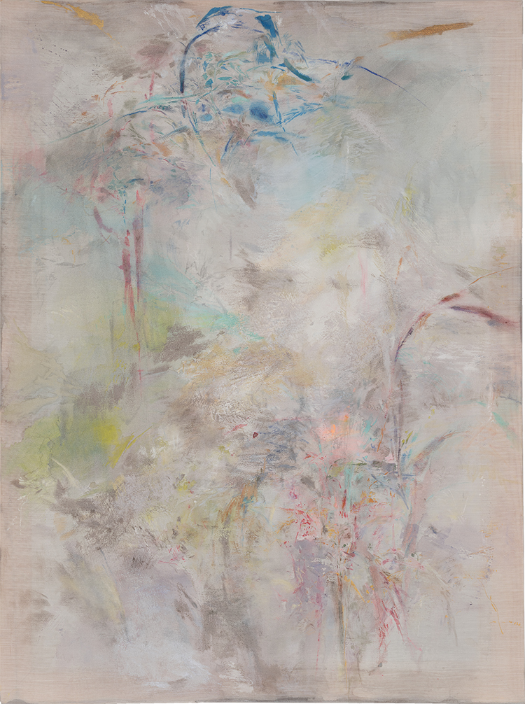 于田田 思緒瘋長時的腦霧, 2024 現代細生絹、礦物顏料、色粉、油畫棒、金泥、木框 80 x 60 cm