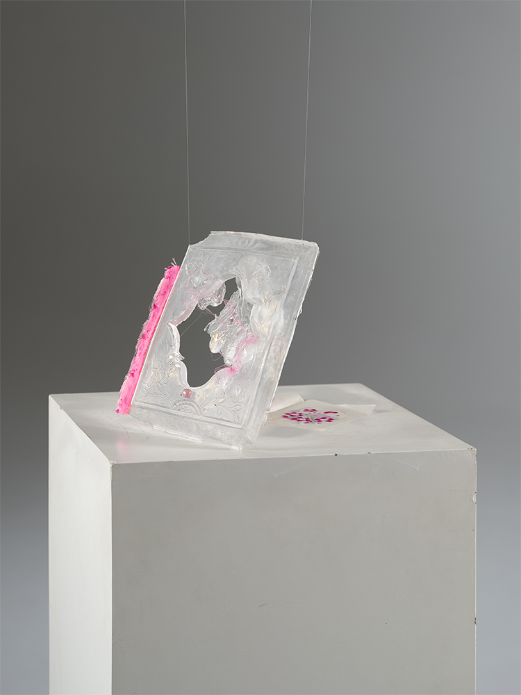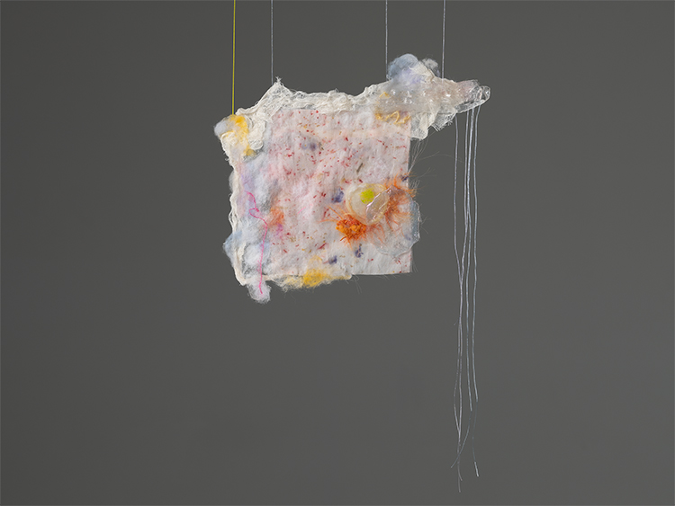 于田田 初綻的少女心, 2024 真絲歐根緞、針織長毛彈力帶、馬海毛手編線、固體油畫顏料、羊毛氈、透明UV自由樹脂、熱熔膠棒、蠶絲線、玻璃線、股線 20 x 24 cm