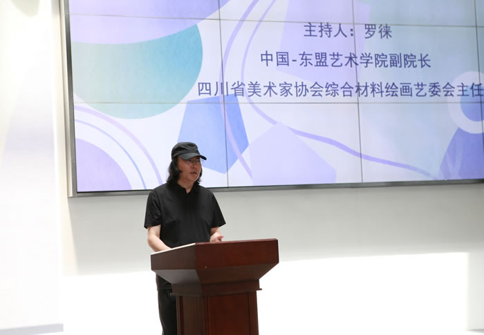 中國—東盟藝術學院副院長羅徠教授主持開幕式,并一一介紹了來自中國美術家協會、川渝藝術機構代表及高校專家學者。