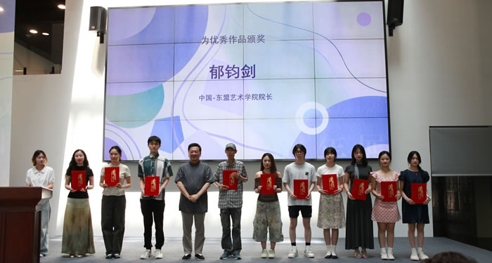 中國—東盟藝術學院院長郁鈞劍為10位獲獎藝術家代表頒發優秀獎狀