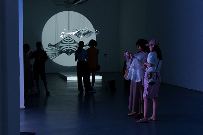 “.GIF”作為數字早期圖像格式,以低技術門檻和高傳播效率流行,其循環播放機制成為“變化”觀看方式的隱喻——一種不斷更新的視覺經驗與意義生成方式。此次展覽邀請段少鋒、辛云鵬、孫文杰三位充滿活力的策展人共同策劃,11位 /組藝術家以 AI算法、機械裝置等多元手段創作。作品或互動或疏離,以搖擺、旋轉或細微變化挑戰感知邊界。展覽跳出“動態裝置”傳統框架,強調“運動”作為作品的結構語言,引導觀眾超越對“動”的直覺,重新思考時空與身體感知的關系,呼應社會科技演進中感知持續更新的生存處境。