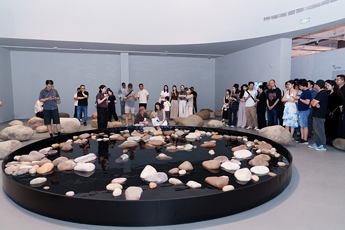 下午四點,開幕儀式拉開帷幕,吸引過百位嘉賓到場觀看。重美術館館長歐陽星、策展人段少鋒、孫文杰和藝術家許毅博先后致辭,各自分享了對于此次展覽的獨到觀點。致辭環節過后,策展人與藝術家引導觀眾沉浸式參觀展覽。開幕儀式由重美術館展覽總監季鈺程主持。