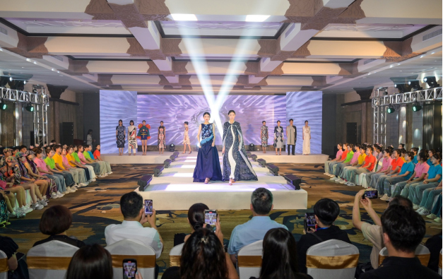 活動開幕式上,服飾秀分別以山東魯繡與臺灣大溪普濟堂文化為靈感,展現了兩岸工藝傳承與美學創新的深度融合。T臺上,兩岸青年設計師以服飾為語言,傳遞對時尚的理解與對中華文化的熱愛。一襲襲華服衣袂翩躚,既有漢服的典雅莊重,又不乏先鋒設計的個性表達,通過展演共同感受兩岸文化同根同源的深厚底蘊。