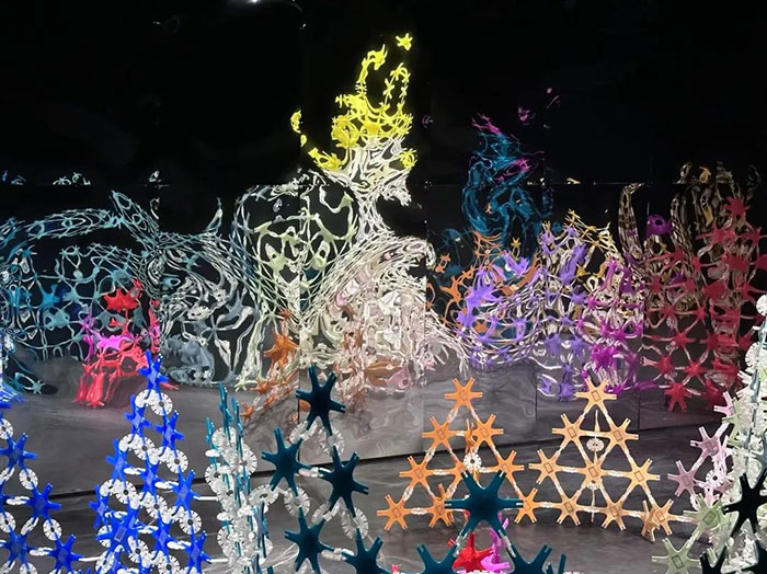 展覽分為“儀器和技術:繪制宇宙”“大數據的星空”“可持續的太空”“未來:行星之旅”四個部分,把科學探索和藝術詮釋融為一體,由科學家與藝術家聯合,通過古代文物、現代動態雕塑、3D影像、交互裝置、沉浸式體驗、概念設計等多元作品形態,以藝術化的方式呈現從宇宙中采集的抽象數據,構建了一次“科學+藝術+歷史”的跨界對話。