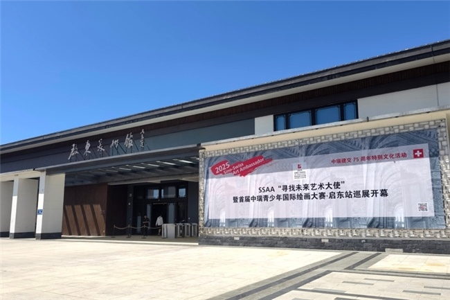 2025年,恰逢中瑞建交75周年。作為紀念這一歷史性時刻的重要文化獻禮,由瑞士貴族藝術學院聯合瑞士中心、瑞士商會、瑞士教育協會聯合發起的“尋找未來藝術大使”暨首屆中瑞青少年繪畫大賽成果展日前登陸啟東,于2025年6月19日在瑞士沃州經濟、創新、勞工和遺產部部長Isabelle Moret訪華之際,在瑞士駐華大使白瑞誼,瑞士駐廣州總領事Markus Thür的共同見證下亮相第二屆大灣區-瑞士經濟合作(東莞)交流會。來自中瑞兩地的眾多中小學生的百余幅作品以數字呈現形式與觀眾見面, 以藝術為媒介,搭建起中瑞兩國青少年之間的交流平臺,鼓勵他們用創作展開跨文化對話。