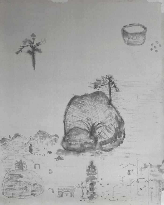 一百多年前,通曉中國地理、哲學、歷史、文學、建筑、藝術等全能型的法國漢學家沙畹從歷史學角度對唐代畫家李昭道《九成宮圖》的研究,對于黃方啟亦是啟發。沙畹翻譯了諸多中國經典著作,且像中國古代文人那樣做注疏,以便法國人能讀得懂。這種“注疏”既是黃方啟的讀書之法,也是其作畫之術,虛渺背后的考釋引證近乎“訓詁”。