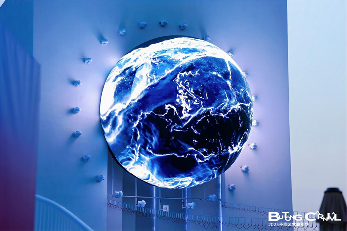 開園儀式現場,一個巨大的影像裝置“不同藝術之眼”頗為引人注目。這座標志性建筑不僅是豎向球形LED屏的亞洲之最,更是小鎮精神內核的具象表達。它象征著一種深度的雙向注視與對話:公眾透過它“看見”藝術的具象表達,而它自身則折射出小鎮未被定義的無限可能與開放姿態。未來,不同藝術小鎮期待以它為精神燈塔,引導公眾開啟與藝術深度對話的旅程,彰顯小鎮作為持續生長、激發共創藝術場域的本質屬性。