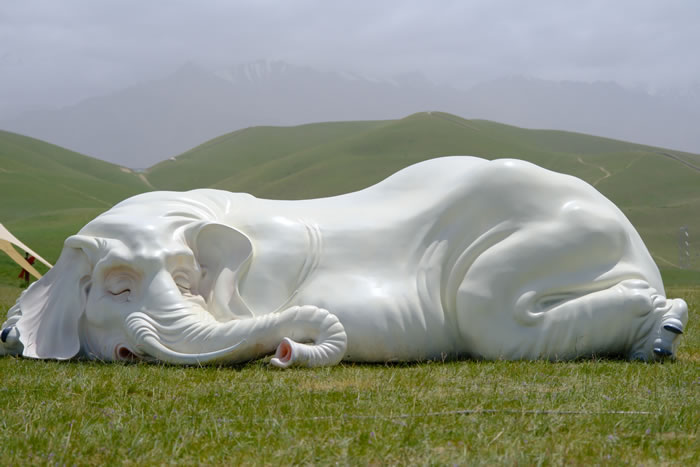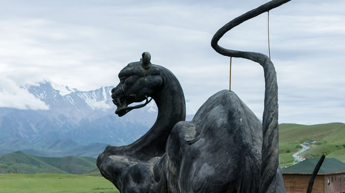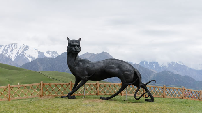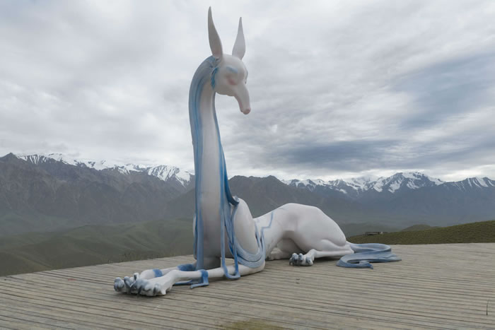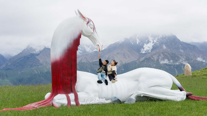 沿著昆侖景區廣袤自然風貌分布的20多件山海經神獸置身于草地、步道間,以雪山為友,與白云為伴,營造出了移步易景、處處皆不同的特殊地域文化場景,并通過神獸雕塑向人們詮釋中國傳統文化中東方哲學與智慧。