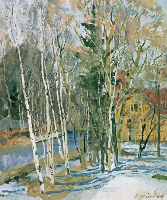《阿力克賽特洛夫斯卡婭的風景》彼·弗明(俄) 板上油畫,42cm ×35cm,1949 年