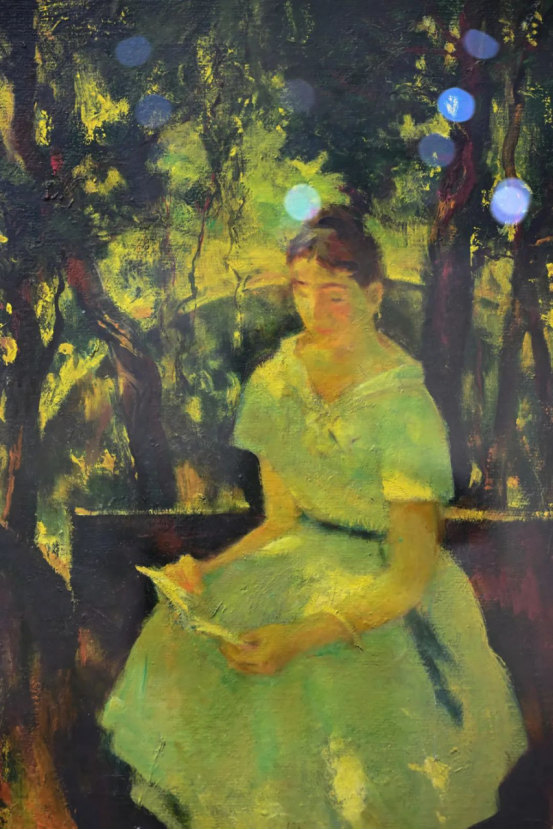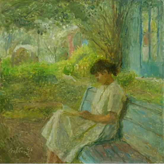 《閱讀》塔·雅勃隆斯卡婭 (烏)布面油畫,40×40cm,1996年