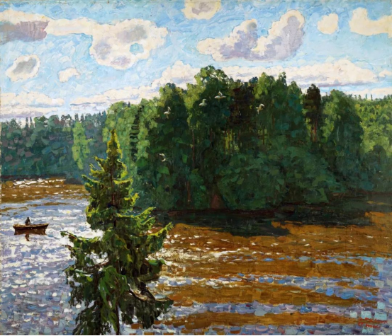《翱翔在湖上的海鷗》謝·特卡喬夫(俄);阿·特卡喬夫(俄)布面油畫,122×142cm,年份不詳