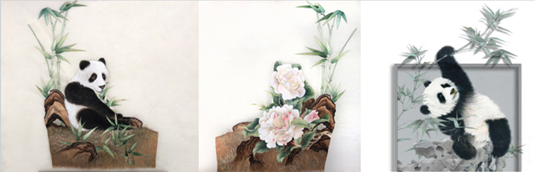 湖南省湘繡研究所-成新湘大師工作室 《熊貓·山茶花》《悠然自“竹”》