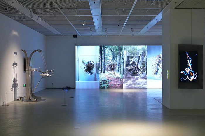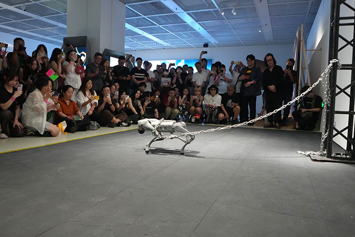 本次展覽的作品囊括了實時交互、行為表演、機器演出、觀念藝術、具身智能、動態裝置、未來攝影、觀念國畫、哲學說唱、AI 交響樂、漢字藝術、影像裝置等橫跨多重媒介譜系的作品。作品圍繞多個交叉議題展開深入探討,包括:AI 藝術的文化語境、介入式古代哲學史、去中心化機器學習的美學后果、人機共情機制與感知交叉點、代理性 AI 的符號政治、身體性 AI 的知覺共情、人工生命的感性結構、歷史記憶的模擬重構、亞文化與生成失真、AI 與人的存在對峙、極限視閾中暗含的認知轉向等。這些議題并非抽象設問,而是在藝術實踐中被真實激活的“問題-感知結構”。它們不只揭示 AI 作為工具的邊界,更敞開 AI 作為語義共生體的可能性。建構起人機共演、協作博弈的實踐現場,以及面向公眾與未來的生成性文化實驗場域。