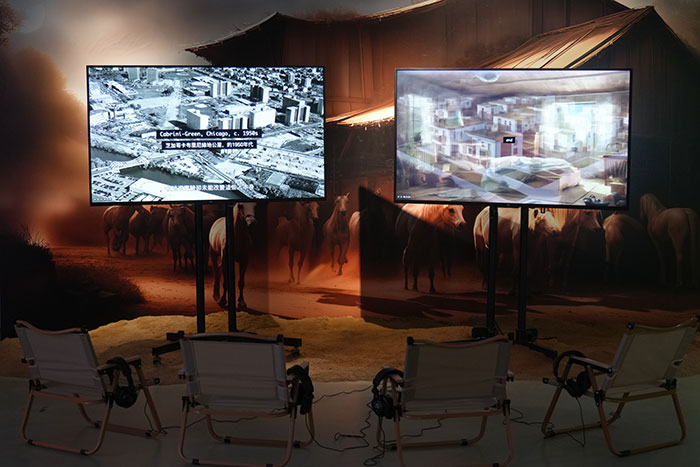 “實驗涌現”板塊的“實驗”,意指不可知不可控的開放狀態;“涌現”則是AI最迷人之處——一種在龐大算力與巨型語言殘骸之間意外生出的靈光。作為“未來學研究中心”持續研究計劃的一部分,本展區集中呈現了多位研究員的實驗性成果,包括姚大鈞的《戰國百家》、邵立昊的《自在溫柔之河》等。