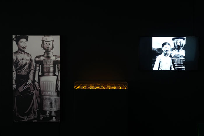 “記憶復寫”板塊中,德國跨界藝術家Boris Eldagsen,通過與 AI共同制作的系列影像,呈現了“從未發生”的虛假記憶,其中一幅作品曾獲索尼世界攝影獎,但最終Boris聲明該作品為AI創作而拒絕領獎,轟動一時。新加坡藝術家何銳安則以檔案影像進入AI系統為起點,追問AI生成邏輯背后,歷史記憶將走向何方;溫辰旻在《蘭芳實現》中通過AI重構南洋華裔文化烏托邦;越南藝術家阮太保的作品則以細胞自動機為算法織機,編織印象派與東方哲思的時空對話。本板塊的作品,展現了AI最驚人之處,正在于它是可以反復再寫的記憶體,即記憶、歷史、現實都有被改寫的可能。
