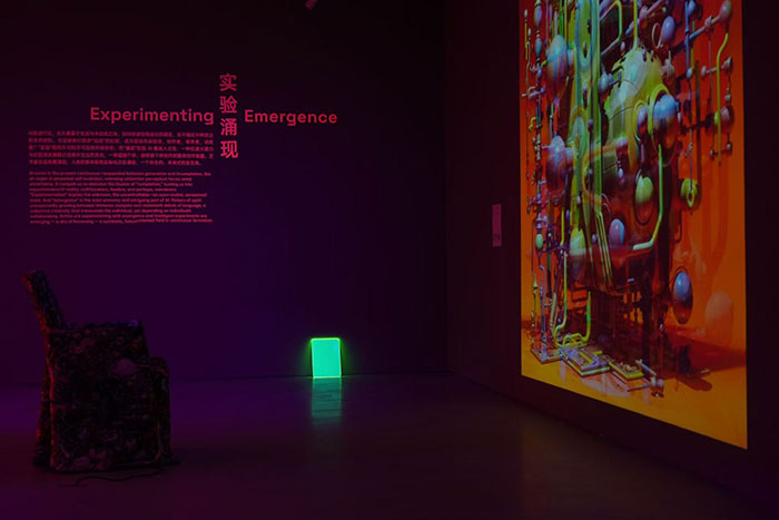 本次展覽分為人工情愫、記憶復寫、幻覺機器、實驗涌現、言辭地景五大板塊,分別對應AI在情感模擬、歷史記憶、認知方法、生成過程與語言結構等領域的藝術探索與觀念實踐。