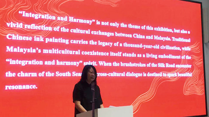 斯日古楞在致辭中表示,本次展覽不僅是中國水墨藝術的一次集中展示,更是中馬文化交流的重要實踐。巡展匯聚26位藝術家的代表作品,融合傳統筆墨與當代表達,旨在推動“一帶一路”倡議背景下的藝術對話與文明互鑒。她強調,“融·和” 寓意文化共融、心靈互通,期望通過此次活動深化中馬兩國人民的理解與友誼,為中華文化走向世界注入新動能。