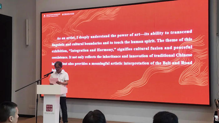 曾三凱代表參展藝術家致辭,他表示,“融·和”展不僅是對中國水墨藝術傳承與創新的呈現,更是一次跨越文化邊界的交流實踐。此次巡展為中馬藝術界提供了寶貴的對話平臺,藝術家們期望通過面對面的交流,深化理解、共促共融,讓中國水墨在世界多元文化中煥發新生機。