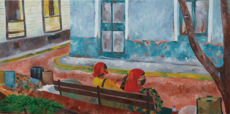 本次畫展匯集了曾在巴拿馬工作生活的黃莎莉、魏蘭、秦翠蓮等多位畫者的作品,以兩大主題構建文化對話的橋梁:“運河對畫”板塊以筆墨為媒介,將運河文化的千年底蘊鋪展于畫卷之上,使中國大運河與巴拿馬運河的文明故事實現了跨越時空的對話;“畫說巴拿馬”則通過鮮明色彩,定格中美洲的熱情風情,生動展現巴拿馬運河的航運傳奇與地域文化的獨特性。巴拿馬華裔青年藝術家黃莎莉的經歷頗具代表性,她在巴拿馬生活工作多年,深度參與中巴文化交流項目?!拔覀兗仁煜ぐ湍民R的文化肌理,又深受中國文化影響,創作時便想將這份雙重視野融入畫筆,可以看到我的部分畫作融合了西方油畫的色彩和中國畫的寫意留白?!彼诓稍L中說,“京杭大運河與巴拿馬運河,一條書寫千年智慧,一條貫通全球貿易,希望觀眾能從畫中讀到‘文明共情’的溫度,感受中巴文化跨越山海的聯結,聽見熱帶雨林的呼吸?!?/p>