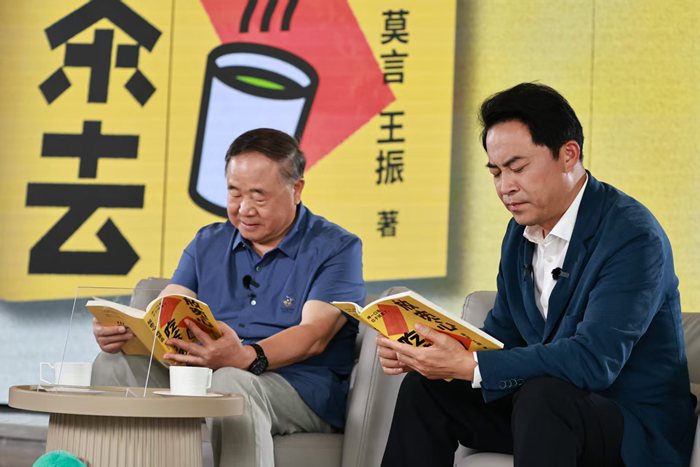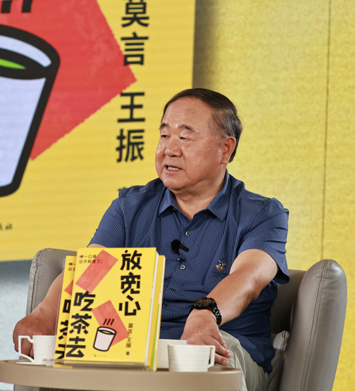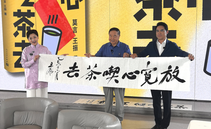 8月5日,由人民文學出版社出版的莫言新書《放寬心,吃茶去》在莫言抖音直播間首發。該書是諾貝爾文學獎獲得者莫言與好友、北京舒同文化藝術研究會會長王振共同創作的隨筆集。新書首發直播現場,莫言、王振和資深媒體人、主持人楊瀾一起,暢談了這部從真實生活中來的隨筆集創作背后的點點滴滴,分享了“放寬心境”走進生活“集市”后的小故事。