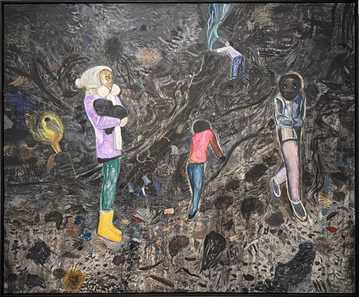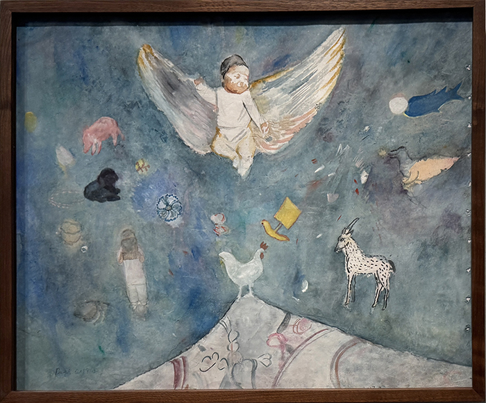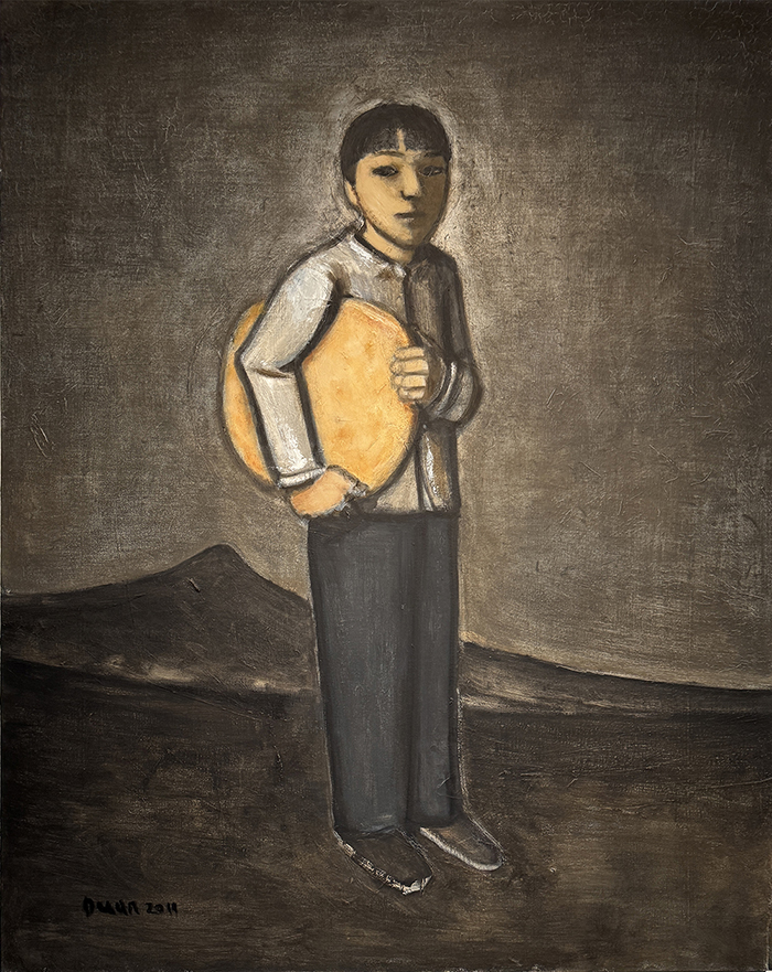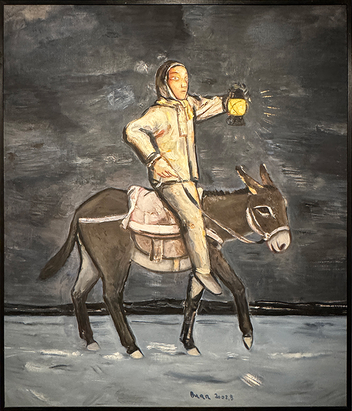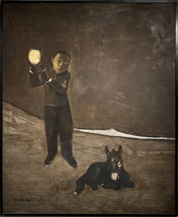 幾幅少年的作品尤為精彩,舉燈照驢的少年,放煙花的少年、梳著齊平劉海兒的少年,低頭看手機的少年,誠真而幽微,令人仿佛回到人之初眼的世界。
