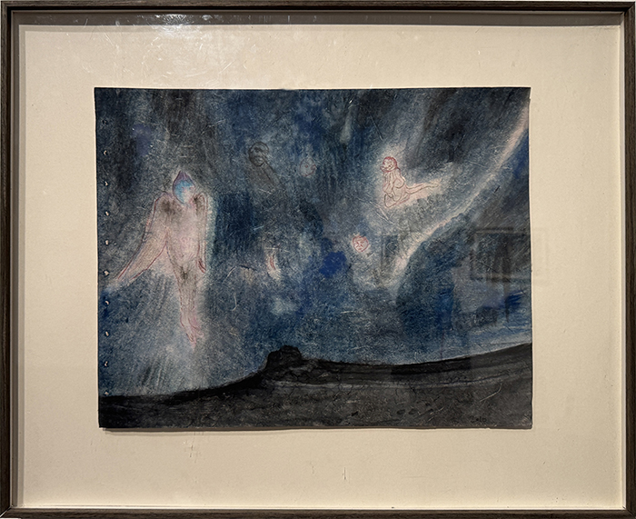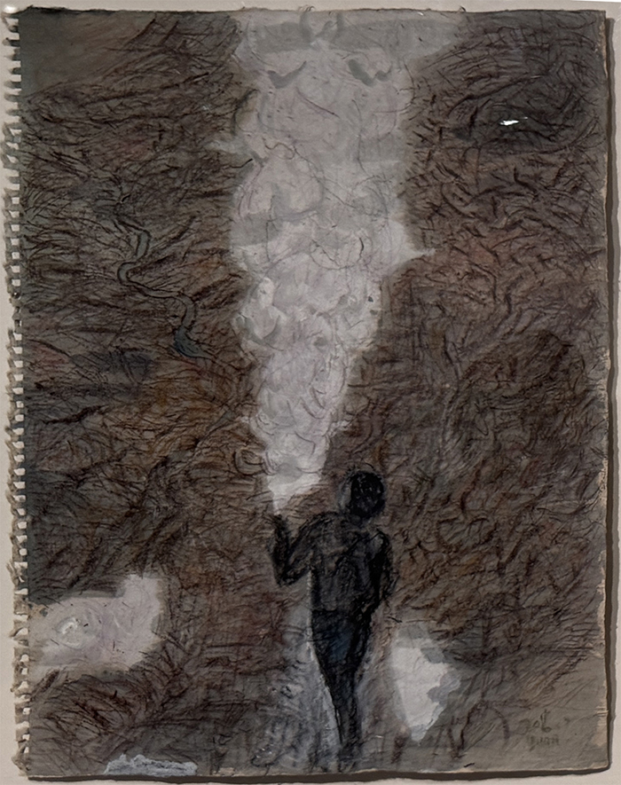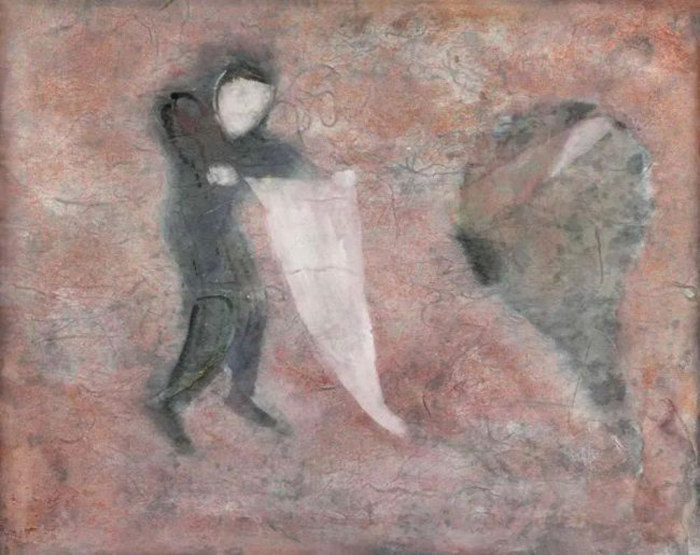 紙本的輕靈提供了段正渠更加易于表現的空間,和油畫的厚重相反,紙本作品用色寡淡,筆法隨性,炭筆粗糲的筆觸與清淡的水色相互疊映,素樸散漫中透出悠遠的意象