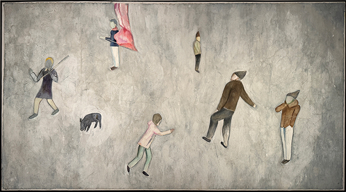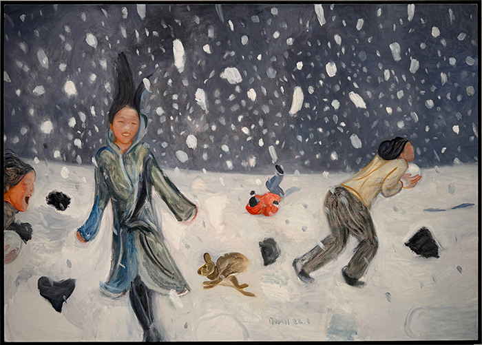新的周期,段正渠聚焦了很多孩子和青年的主題,天真與歡樂的情緒慢慢走入他的作品序列?!稓g樂》是一張描繪北京雪天學生們歡愉的場景,人物畫的非常放松,藝術家本來要把右面人的黑褲畫深一層,但是幾筆就出現了布料沙沙的感覺,就停在那里。這與他以往的作品強烈的表現方式完全不同。