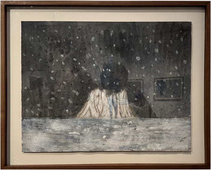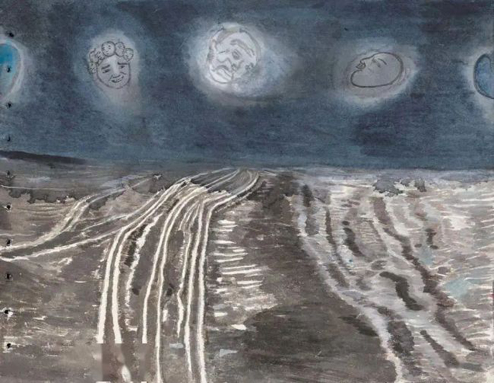 大地上幾道殘雪的車轍、古城上空浮現的人像,雪霧中躊躇的行人...凡此種種尋常物事,經藝術家的點染,便生出別樣生機與遐思。不見滯澀,唯有舒展,此刻時光與景物相融,引著觀者沉入記憶與想象的深處。