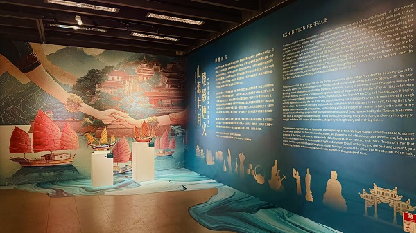 展覽通過 “山境·多元共融”“海韻·絲路相牽”“城跡·刺桐煙火”“聲景·南曲戲音” 四大主題篇章,深度詮釋泉州山海交融的文化基因:山境:惠安石雕《望月抒懷》鐫刻哲思,德化白瓷觀音凝月生輝,金蒼繡龍蟒桌圍流光溢彩,永春紙織畫《高山流水》霧隱空靈;海韻:水密隔艙福船揚帆再現絲路傳奇,蟳埔女簪花圍如流動花園,惠安女服飾與閩臺同源的東石宮燈共訴血脈親情;城跡:泉州花燈《圓融福聚》勾勒吉祥圖騰,珠繡旗袍《旗遇丹珠》映照刺桐夜色,安溪鐵觀音茶香氤氳間,《鐵觀音秘籍》寫就茶人匠心;聲景:南音洞簫千年古韻繞梁,提線木偶絲弦翻飛演繹悲歡,梨園戲《陳三五娘》繡帕藏盡閩南情話,高甲戲丑角詼諧舞動,打城戲臉譜玄妙生輝。