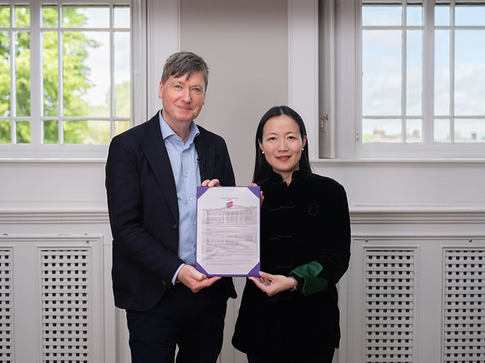 西蒙·格羅姆(左)和朱瑋琦(右)在簽約現場
