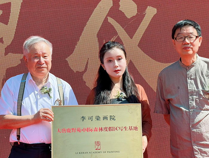 李庚為邢斯恬授牌“李可染畫院大唐鹿野苑·國際森林度假區寫生基地”