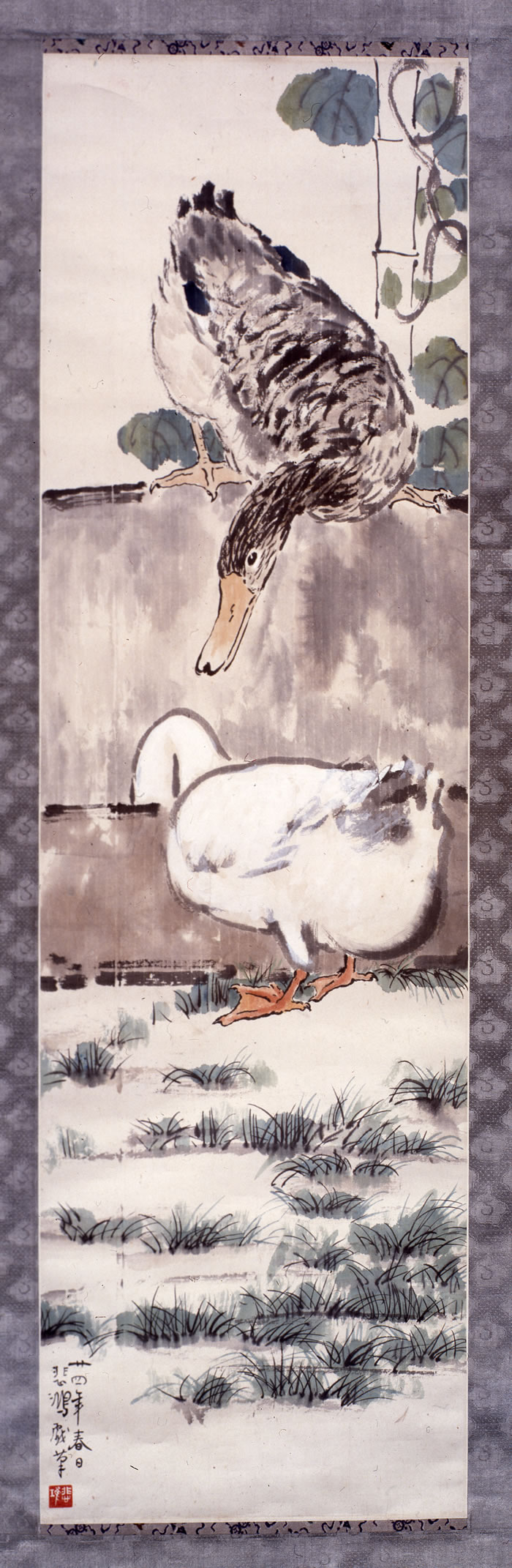 《鴨子》113×33cm,紙本水墨,1935年