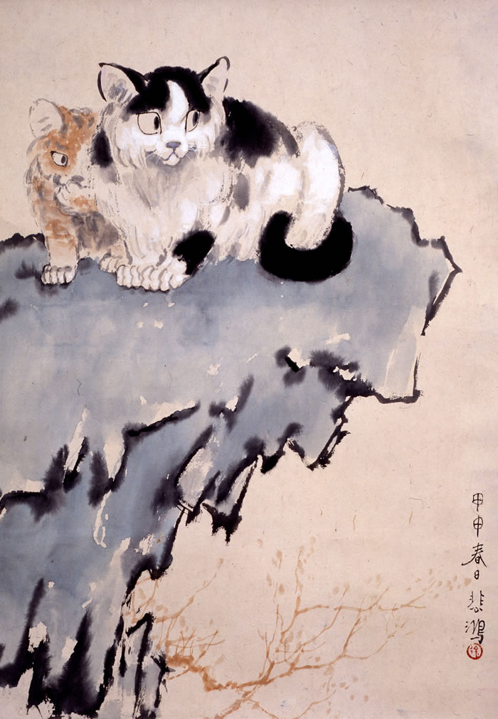 《雙貓》81×42cm,紙本水墨,1944年
