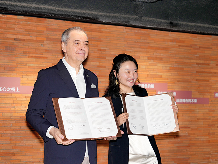同時,“她美術館”還與澳門文化體簽署了戰略合作協議,推動女性藝術多方面合作。澳門文化體主席、澳門婆仔屋文創中心主席、澳門國際女性藝術雙年展創辦主席馬若龍(Carlos Marreiros)出席了簽字儀式并講話。