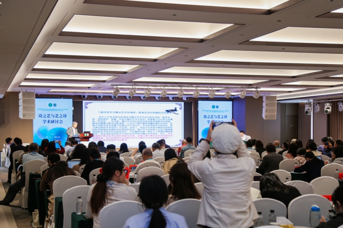 在主旨論壇中,來自北京大學的彭鋒教授、上海交通大學的夏燕靖教授、中國傳媒大學的王廷信教授、北京師范大學的周星教授、深圳大學的李心峰教授、山東藝術學院的田川流教授、《文藝研究》主編李修建研究員等12位專家學者,從古典文本解讀、美學精神闡釋、跨文化比較、學科建設等維度,深入剖析詩與藝術的內在關聯,專家們的觀點碰撞為參會者帶來了深刻的學術啟發。