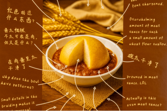 《眨眼間》通過 AI生成了世界上不同國家特色美食的圖片,讓10歲左右的兒童對圖片的細節進行評論,觀眾通過圖像與圖像上的評論文字可以了解,在數字化時代中孩子們對AI物化的世界的新的認知方式。