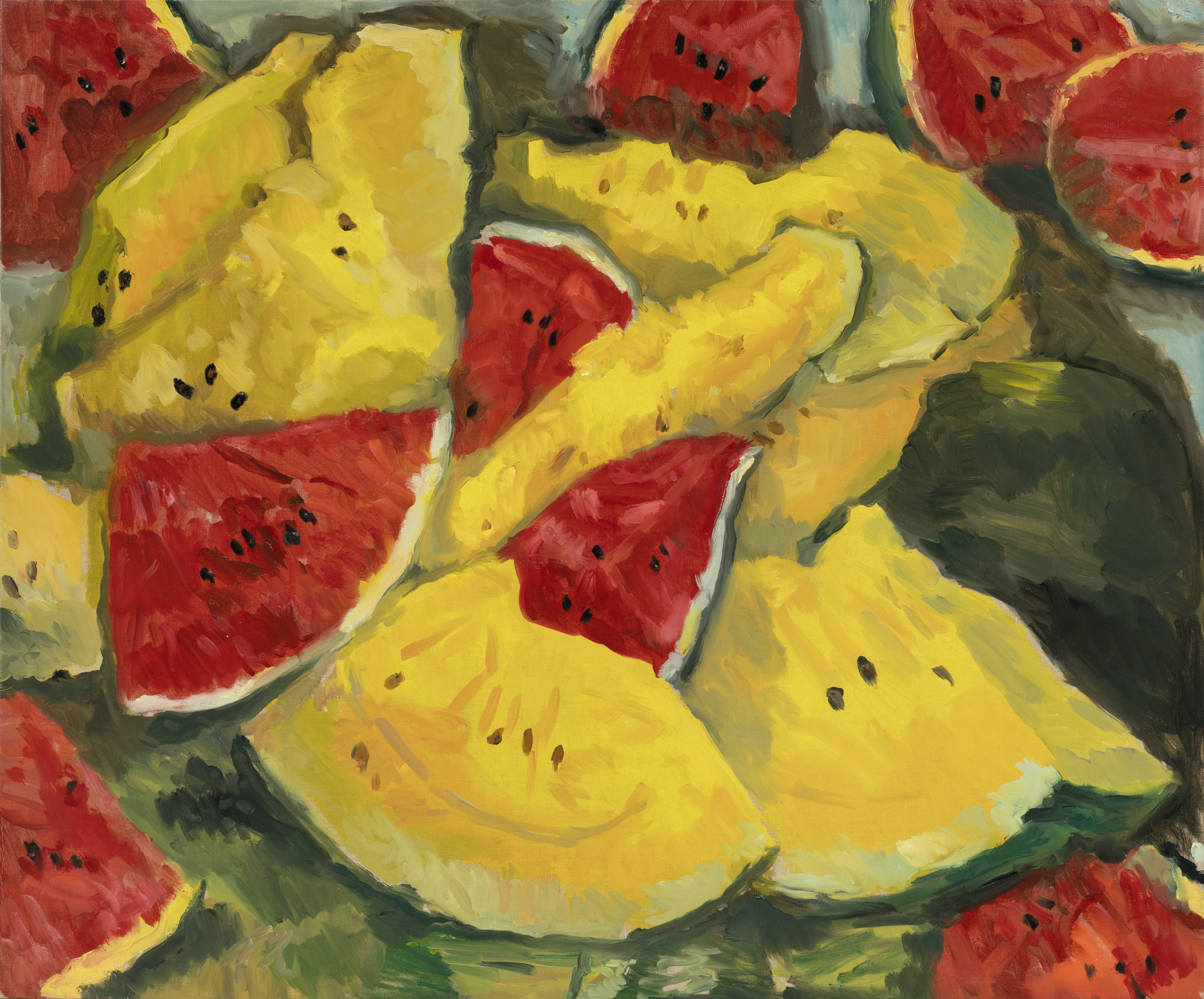 倪軍形象地比喻道,“畫家一個人就相當于制片人、導演、演員和剪輯師。所以畫家做‘電影夢’,是在畫布上實現——調度人物、安排西瓜桃子花兒、布置場景…這次展覽也算是階段性地呈現我的這些嘗試”。