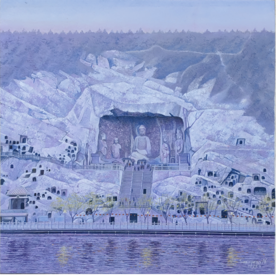李凱書《龍門石窟二月》布面油畫 120x120 2023