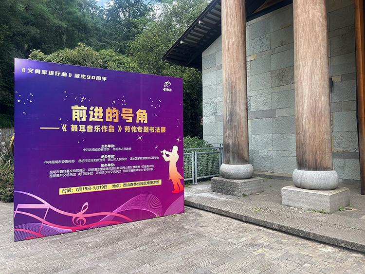 今年是中國人民抗日戰爭暨世界反法西斯戰爭勝利80周年,同時在《義勇軍進行曲》誕生90周年之際,聚焦“講好聶耳和國歌的故事”,“前進的號角 ——《聶耳音樂作品》勞偉專題書法展”作為紀念和獻禮在云南省昆明市西山森林公園聶耳墓旁艾維美術館舉辦。