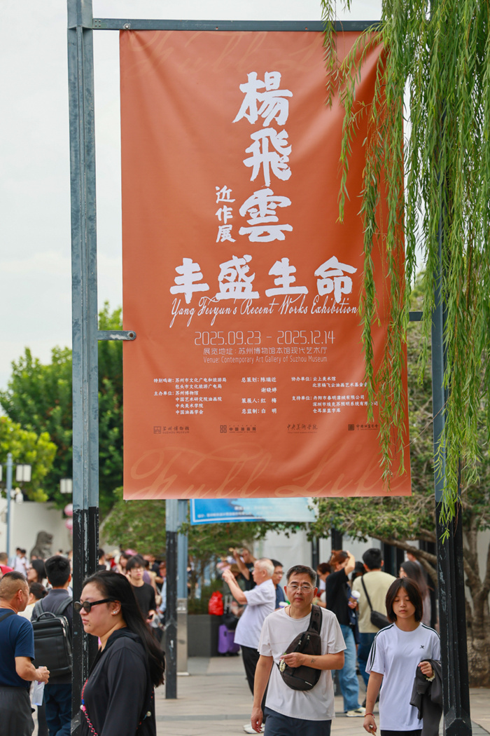 9月22日,由蘇州博物館、中國藝術研究院油畫院、中央美術學院、中國油畫學會聯合主辦,云上美術館、北京楊飛云油畫藝術基金會聯合協辦,蘇州博物館名譽館長陳瑞近、蘇州博物館館長謝曉婷擔任總策劃,中央美術學院美術館收藏委員會副主任紅梅擔任策展人的“豐盛生命——楊飛云近作展”在蘇州博物館開幕。中國文聯副主席、中國油畫學會會長許江,中央美術學院院長林茂,中國藝術研究院油畫院院長朱春林,中國美術家協會副主席陸慶龍等出席了開幕式。